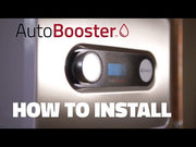 Turn off circuit breaker. Install unit on hot water outlet pipe above tank heater (requires 14" clearance). Cut pipe following manual diagrams. Connect inlet to tank outlet and outlet to home hot water line. Disconnect tank power wires and route through AutoBooster first, then reconnect to tank. Connect unit to 240V circuit. Turn on water supply and check for leaks. Professional installation recommended.